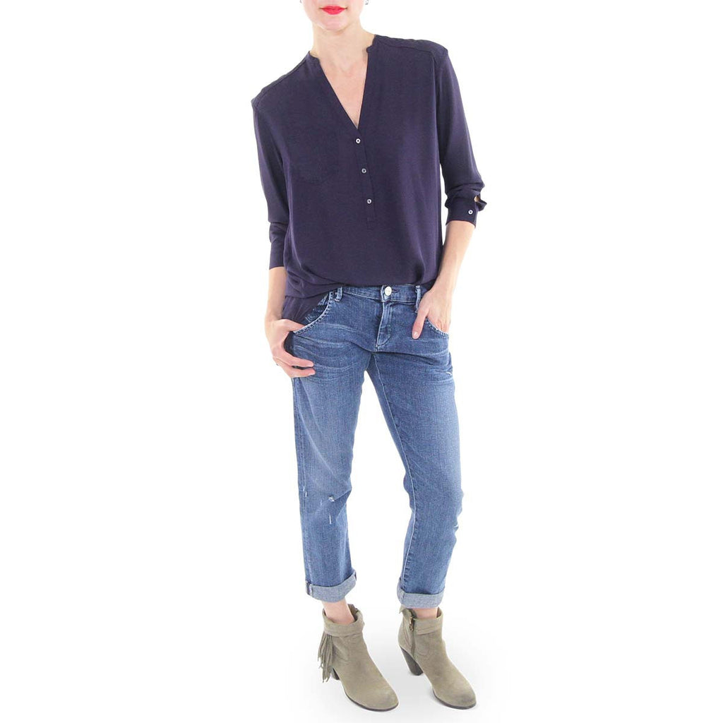 This mandarin collar tunic is a great staple piece for any wardrobe, but it's ideal for a new mama trying to get her body back to "normal". The relaxed fit in a non-clingy fabric looks great worn untucked with skinny pants or leggings. If you have already said goodbye to the baby weight, then we suggest tucking it into a classic pair of trousers for the office.