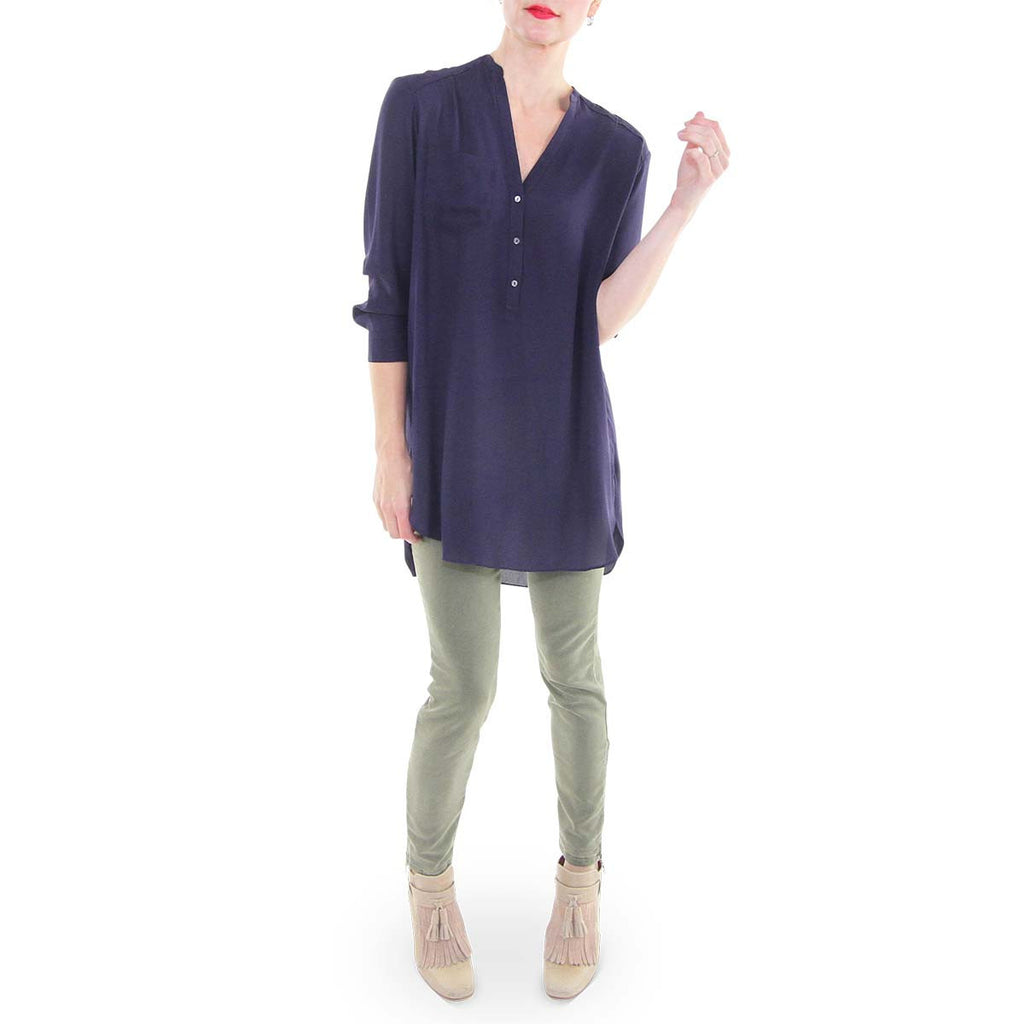 3/4 Sleeve Madarin Collar Tunic - Plum
