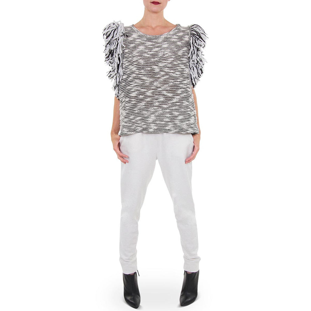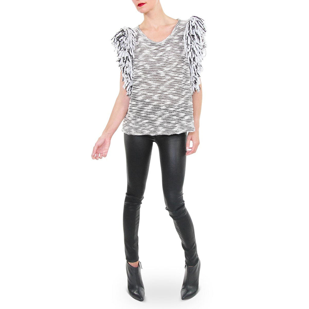 Fringe is in. And in the case of this Sam & Lavi top, fringe is comfy. We love this showstopper knit paired with its matching skirt for the head-to-toe knit trend or with a classic black skinny pant for a downtown date night look. Its versatility is amazing as it works just as well casually with a pair of ivory colored sweatpants as it does with with a black leather pencil skirt for nights on the town. It also does a great job hiding a little post baby belly weight!